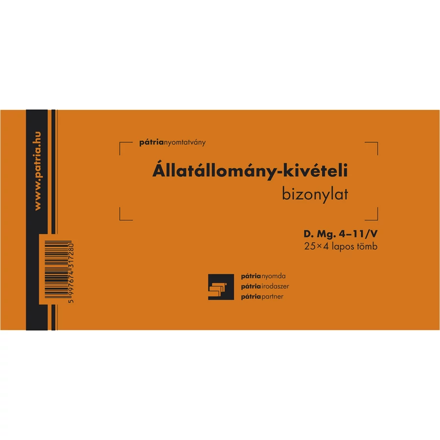 Állatállomány kivételi bizonylat 25x4 lapos tömb 203x102 mm