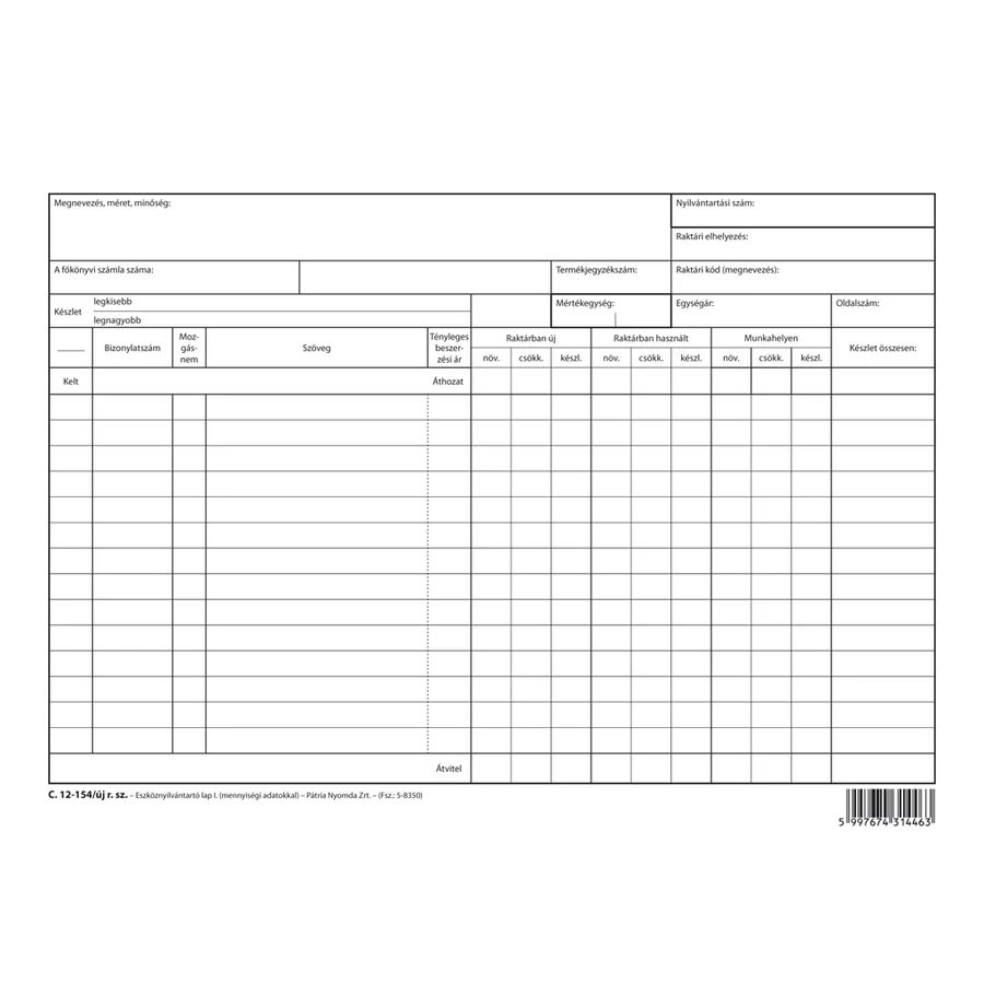 Fogyóeszköz mennyiség nyilvántartó szabadlap A/4 fekvő