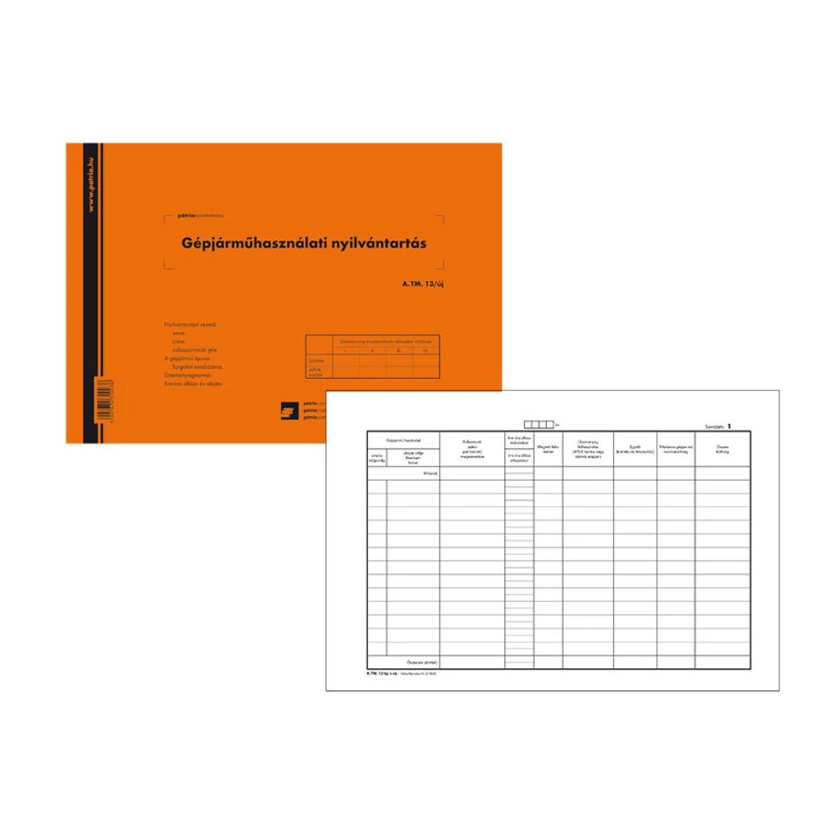 Gépjármű használati nyilvántartás 25 lapos tömb A/4 fekvő