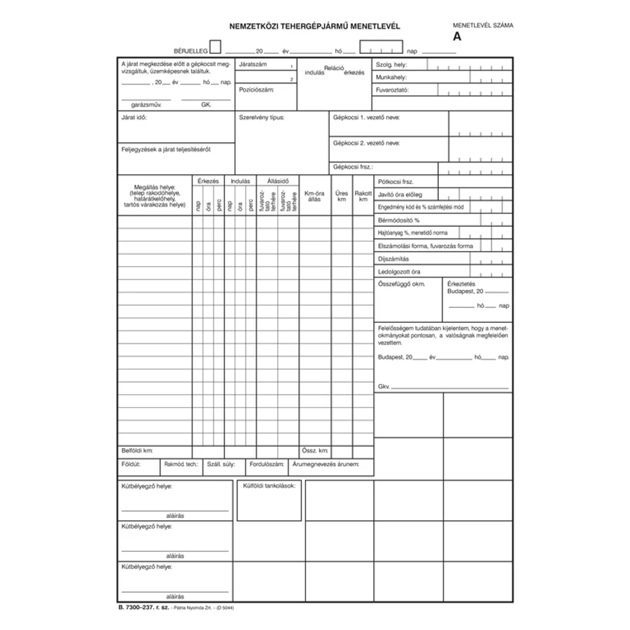 Nemzetközi tehergépjármű menetlevél szabadlap A/4 álló