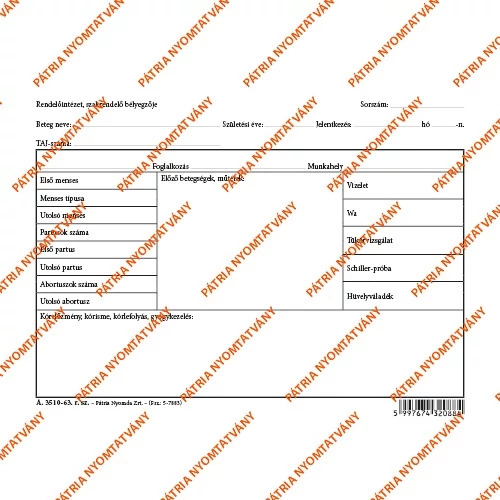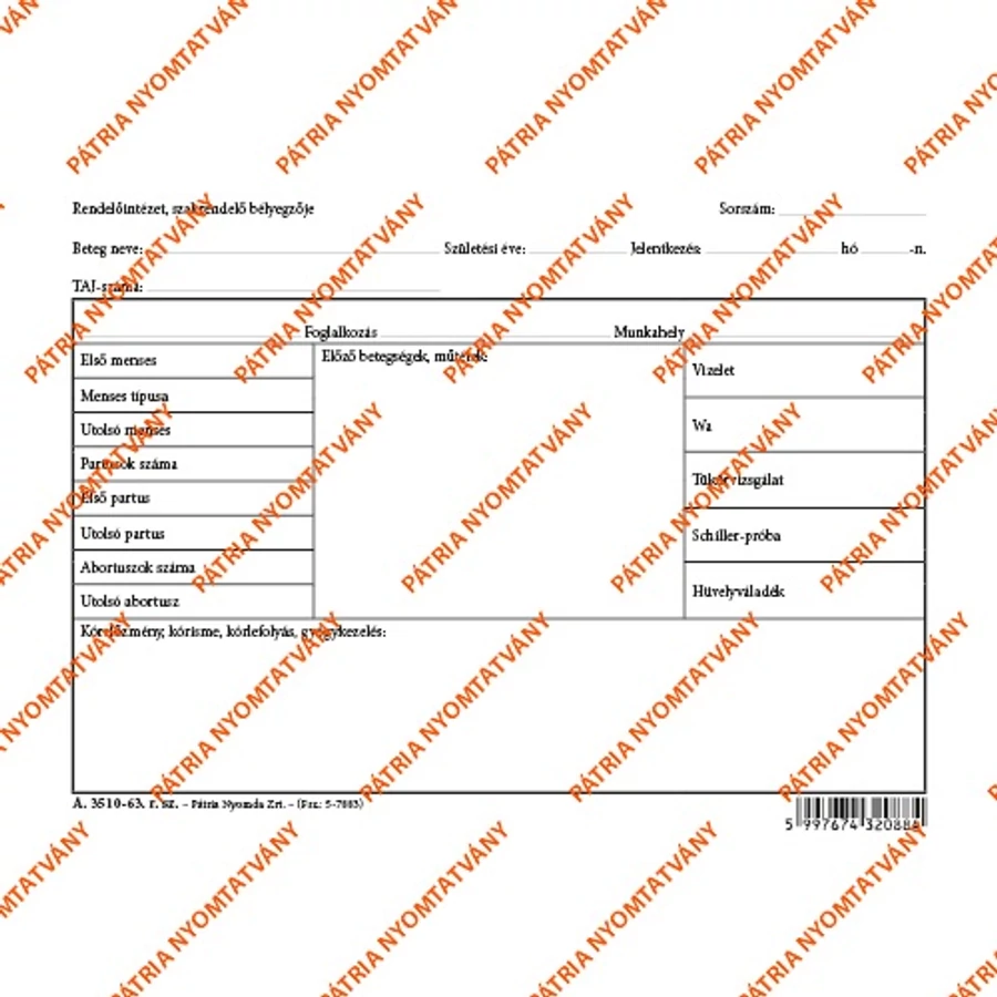 Nőgyógyászati karton szabadlap A/5 fekvő